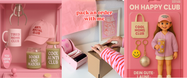 Ich bin Anna, Gründerin & kreative Seele von OH HAPPY CLUB. 2022 startete alles auf Etsy unter dem Namen "Bloomenbar" – aus ein paar Gläsern wurde schnell eine echte Community – und 2024 folgte mein eigener Onlineshop.