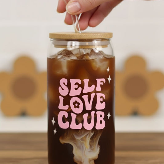Trinkglas "Self Love Club" mit Deckel & Strohhalm