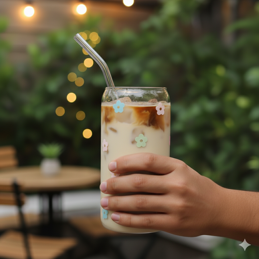 Trinkglas mit Herzchen – Deckel & Strohhalm