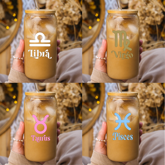Sternzeichen Trinkglas mit Bambusdeckel