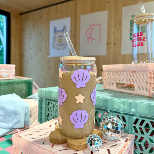 Trinkglas 'Muscheln' – Deckel & Strohhalm