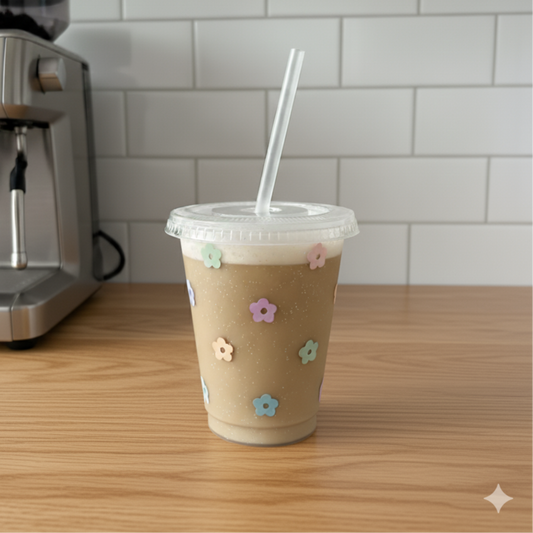 Flowerpower Trinkbecher mit Deckel & Strohhalm