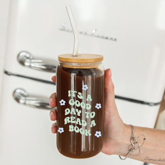 Trinkglas "Day Drinking Club" - mit Deckel und Strohhalm