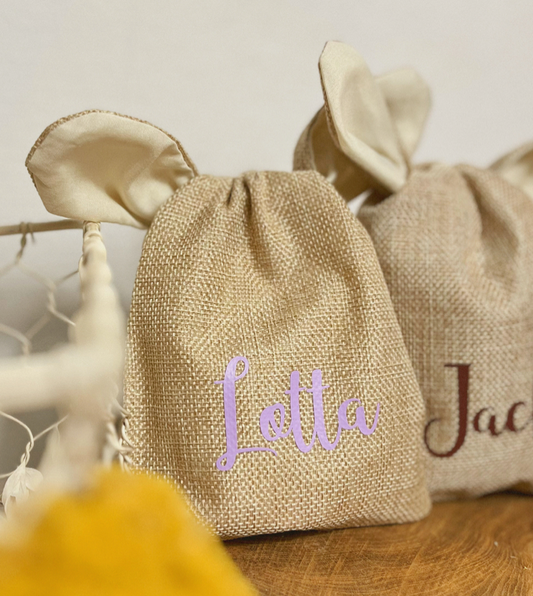 Personalisierter Osterbeutel mit Hasenohren aus Jute – Osternest mit Name