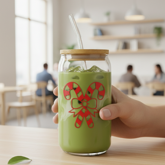 Trinkglas "Zuckerstangen" – mit Bambusdeckel & Glasstrohhalm
