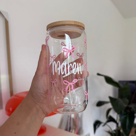 • personalisiertes Trinkglas mit Schleifen und Name "Anna"