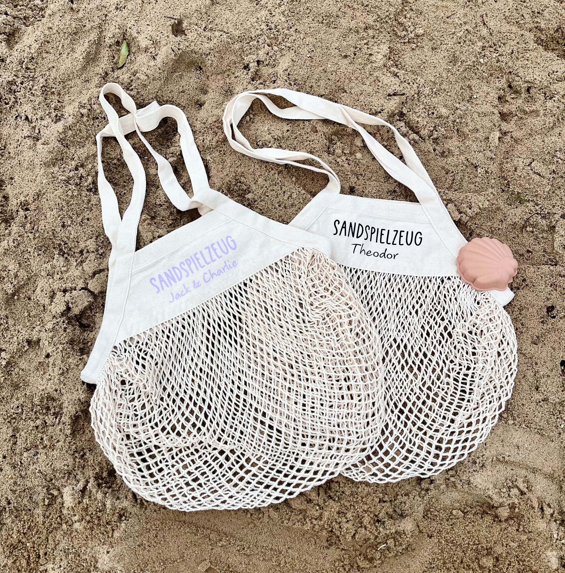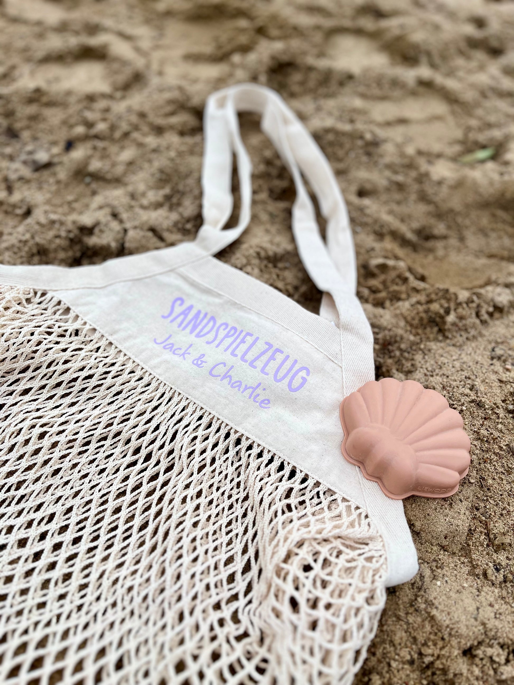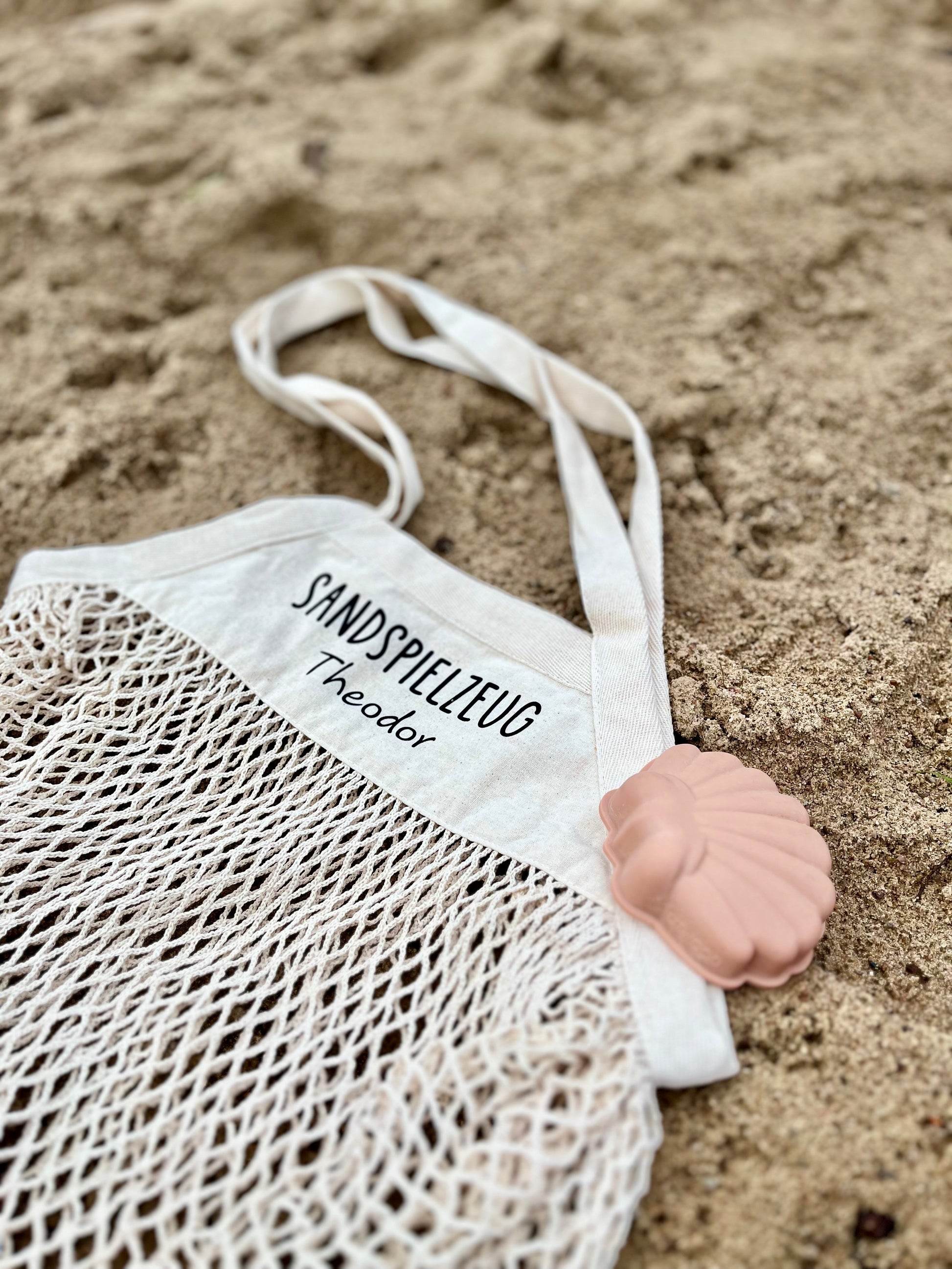 Personalisierte Netztasche mit Namen für Sandspielzeug