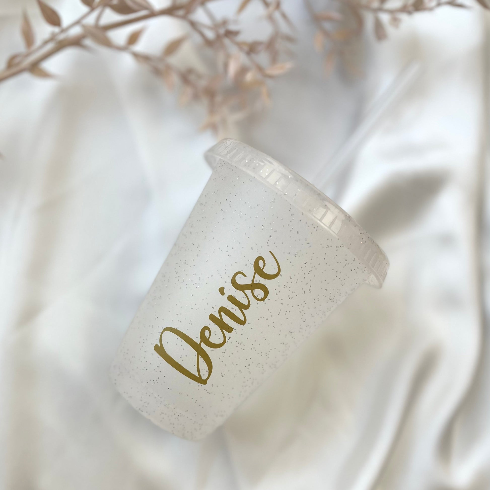 📏 Höhe ca. 12cm hoch (ohne Trinkhalm) | Gefrostetes Design mit Glitzer