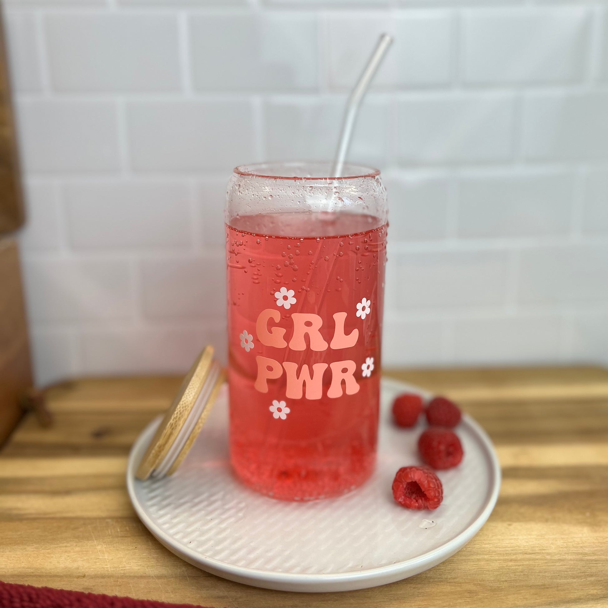 Trinkglas "Girl Power" mit Deckel & Strohhalm