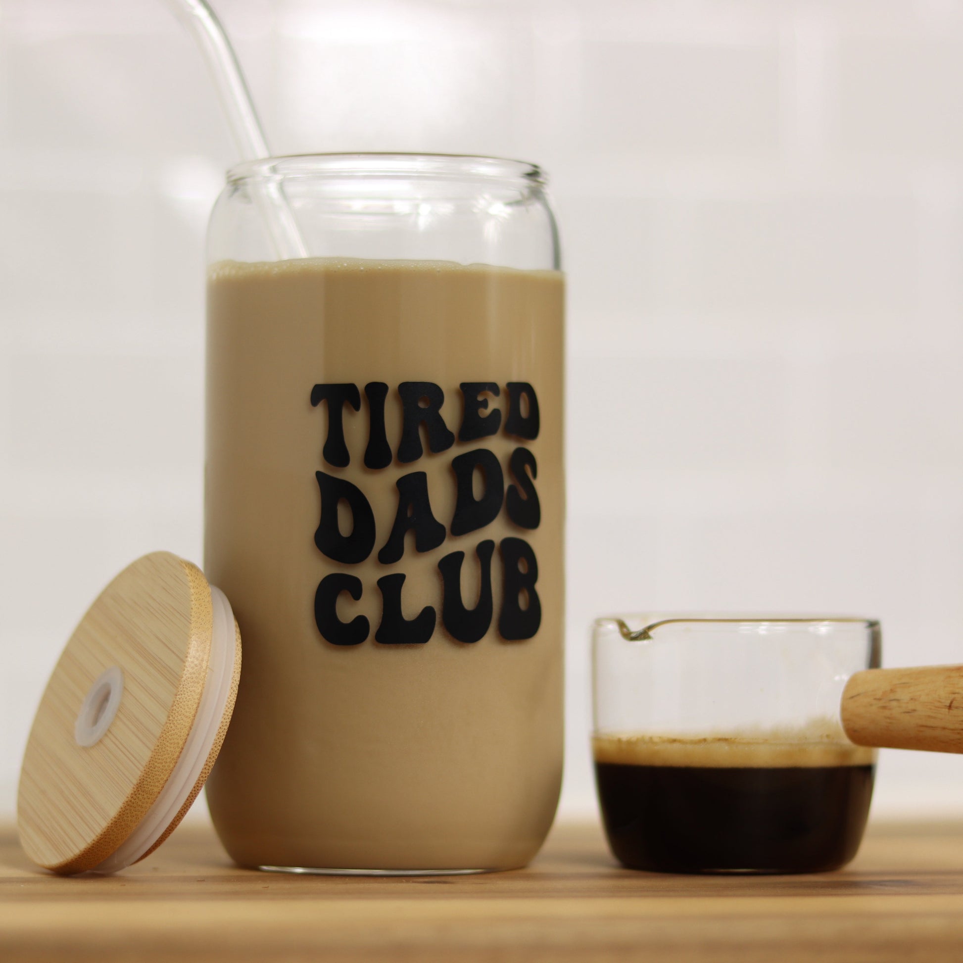 Tired Dads Club Glas mit Deckel & Strohhalm